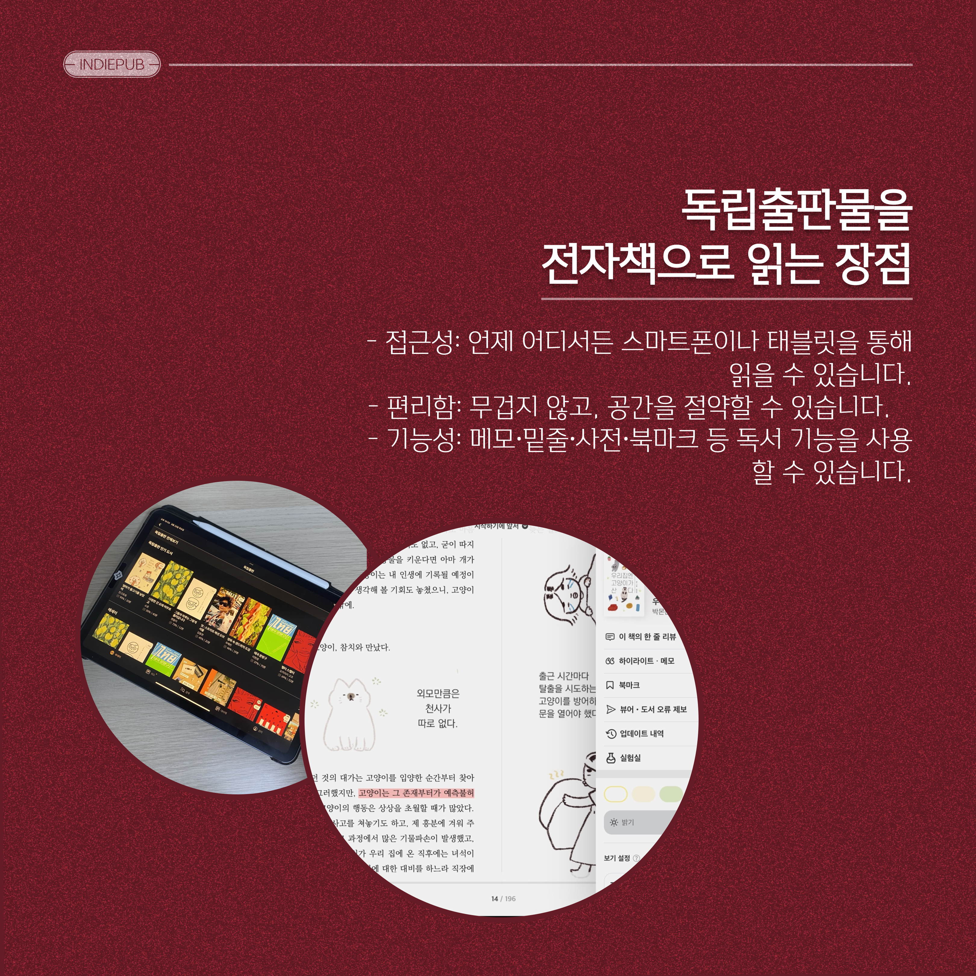 그렇다면 전자책으로 독립출판물을 읽는 장점에는 무엇이 있을까요?