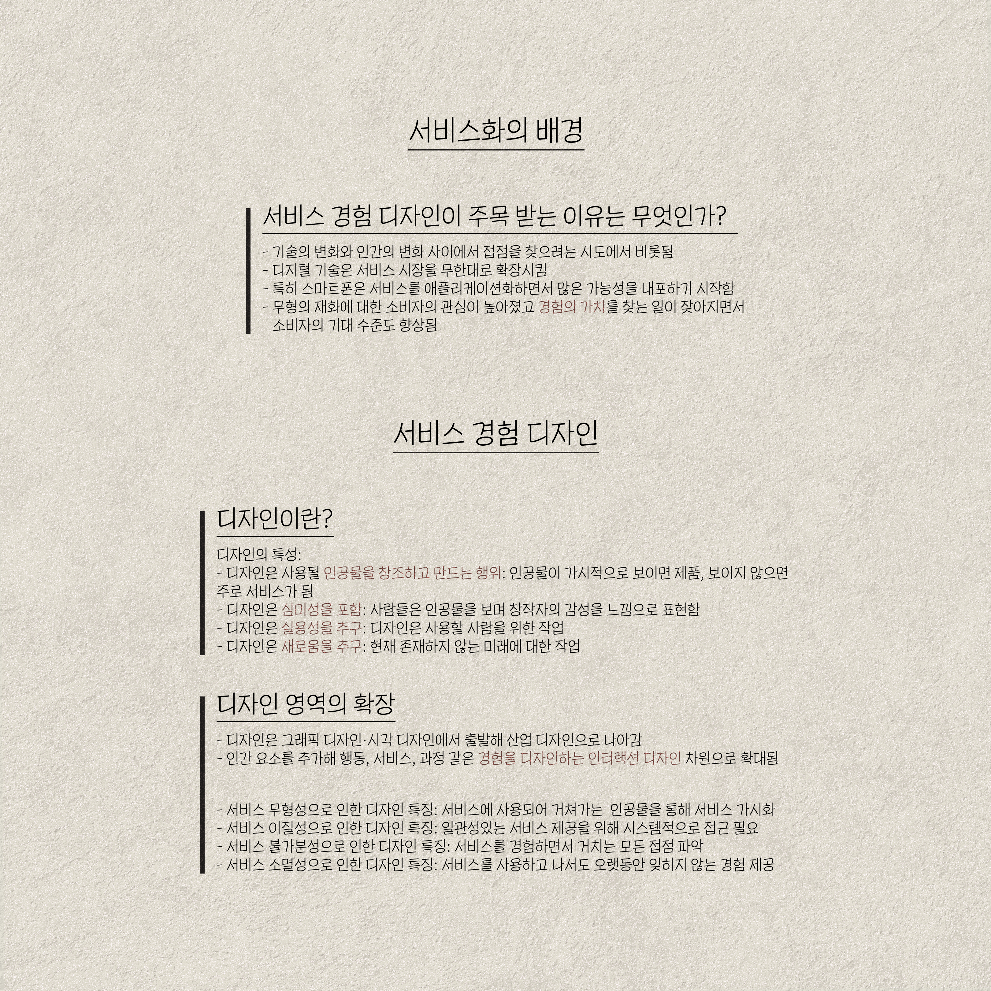 기술의 발전과 더불어 서비스 산업은 점점 더 중요한 위치를 차지하고 있습니다. 디자인 기술의 발달은 서비스 경험을 더욱 풍부하고 직관적으로 만들었으며, 소비자의 기대 수준 또한 끊임없이 상승하고 있습니다. 오늘날의 소비자들은 단순히 제품을 구매하는 것이 아니라, 제품을 사용하는 동안의 경험까지도 중요한 요소로 여깁니다.