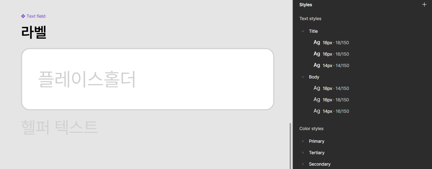 - 글자 레이어 생성 ▶️ '플레이스홀더' ▶️ 스타일 body16px 적용