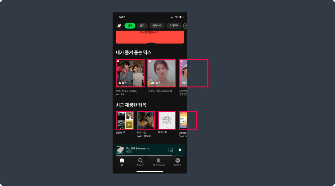 스포티파이는 개인화를 통해 사용자 개인을 위해 만들어진 것이라는 느낌을 줘야 함