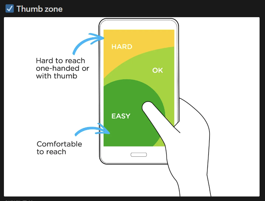 터치해야 하는 대상은? ▶️ 마우스나 손가락이 쉽게 닿을 수 있는 영역에 배치해야 함