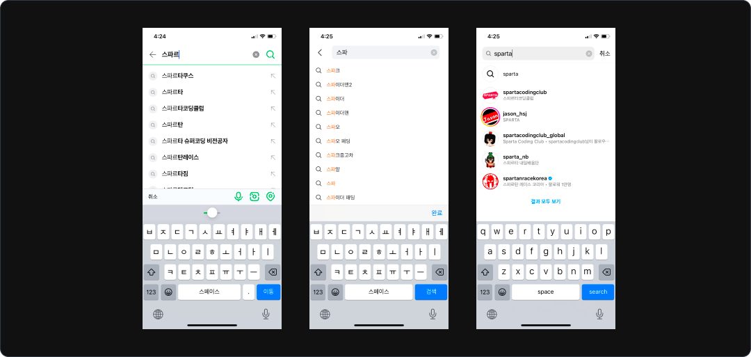 - 기본 검색 화면: 제품에서 차지하는 검색의 중요도에 따라 검색 기능의 위계가 다름