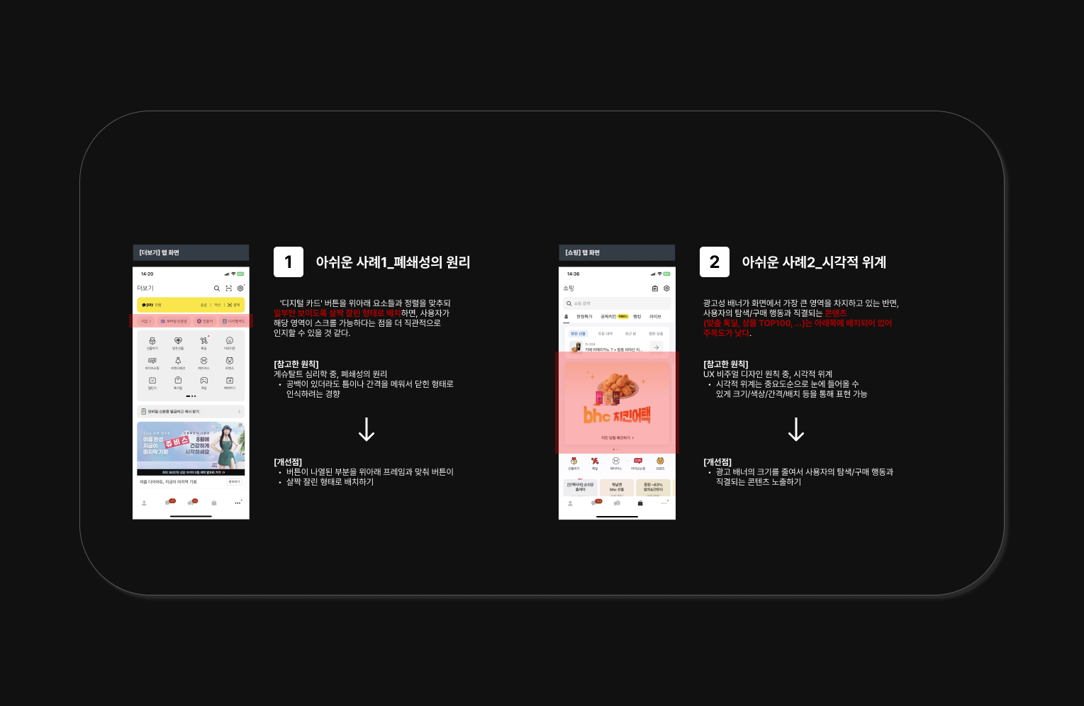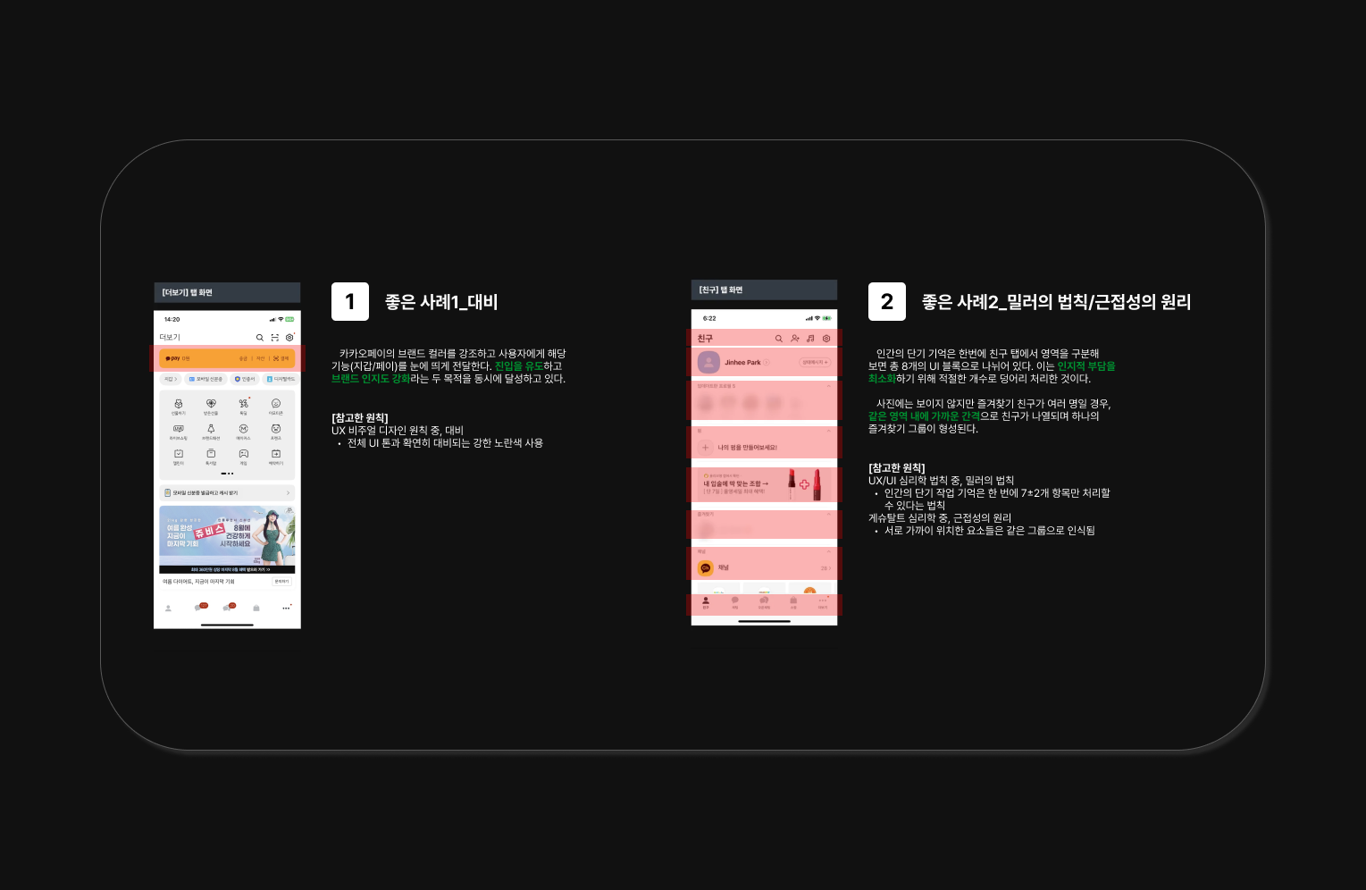 - 좋은 사례 2개와 나쁜 사례 2개, 총 4개의 사례를 찾아서 디자인 원칙에 근거해서 작성해보기
