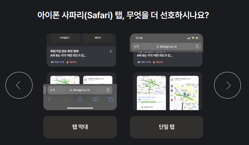 아이폰 사파리(Safari) 탭, 무엇을 더 선호하나요?