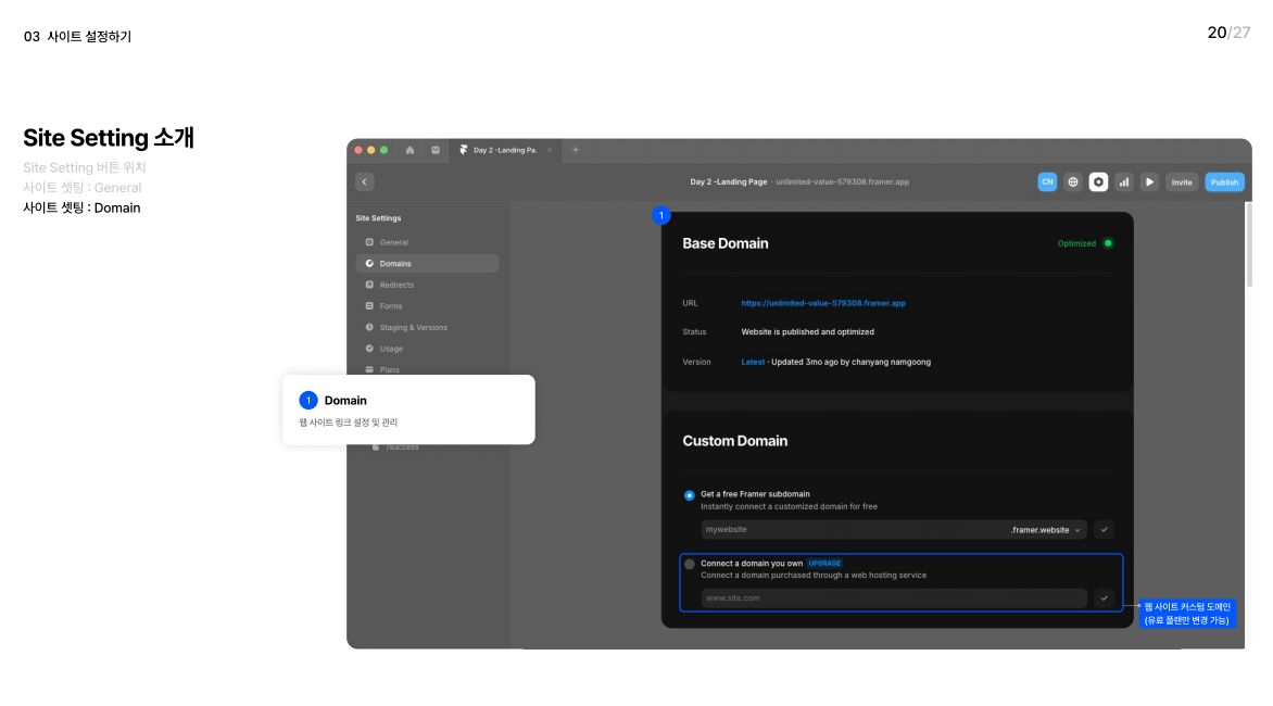- 프레이머 실습에서 포트폴리오 만들기를 진행하면서 SEO 설정, Analytics 활용, CMS 사용법을 배웠는데, 생각보다 흥미로웠다. 나중에 써 먹으면 좋을 것 같다.