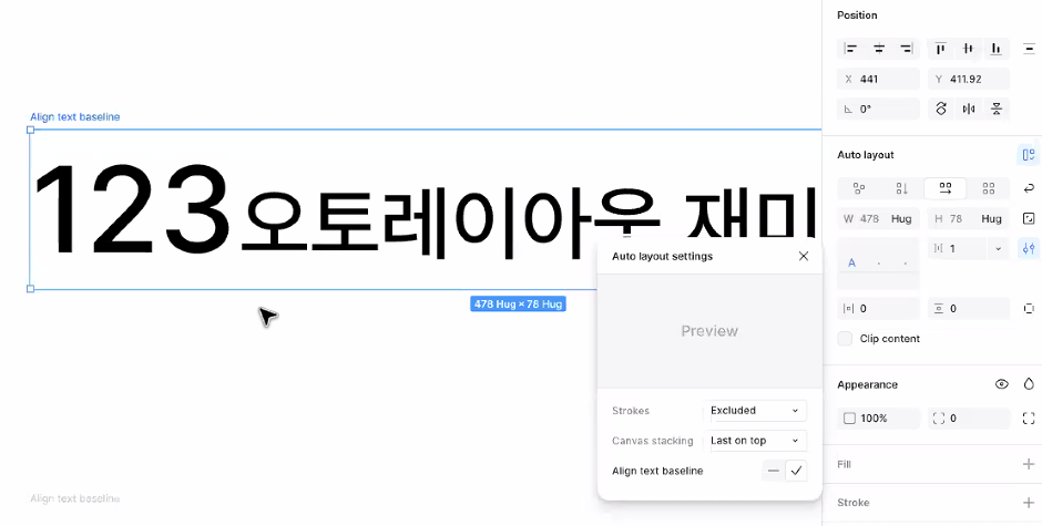 - 텍스트 두 개 묶었을 때 정렬 맞추려면 auto layout settings에서 설정